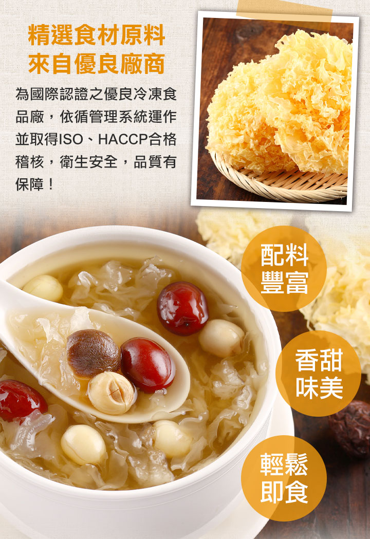 商品成份:蓮子、紅棗、白木耳、福圓、水、冰糖