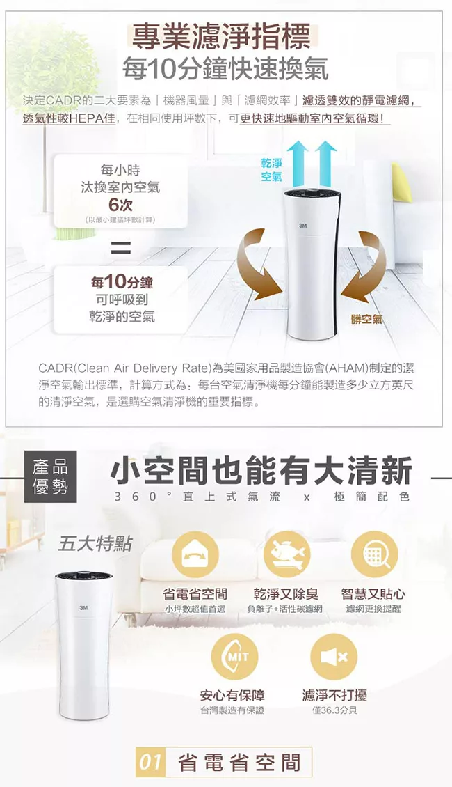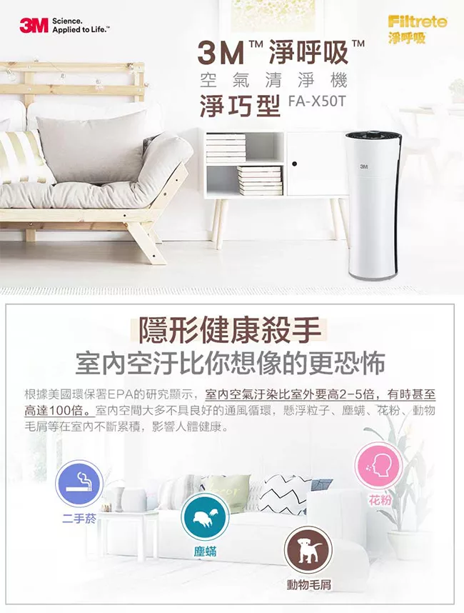 3M™ 淨呼吸™ ~4坪 淨巧型空氣清淨機 FA-X50T