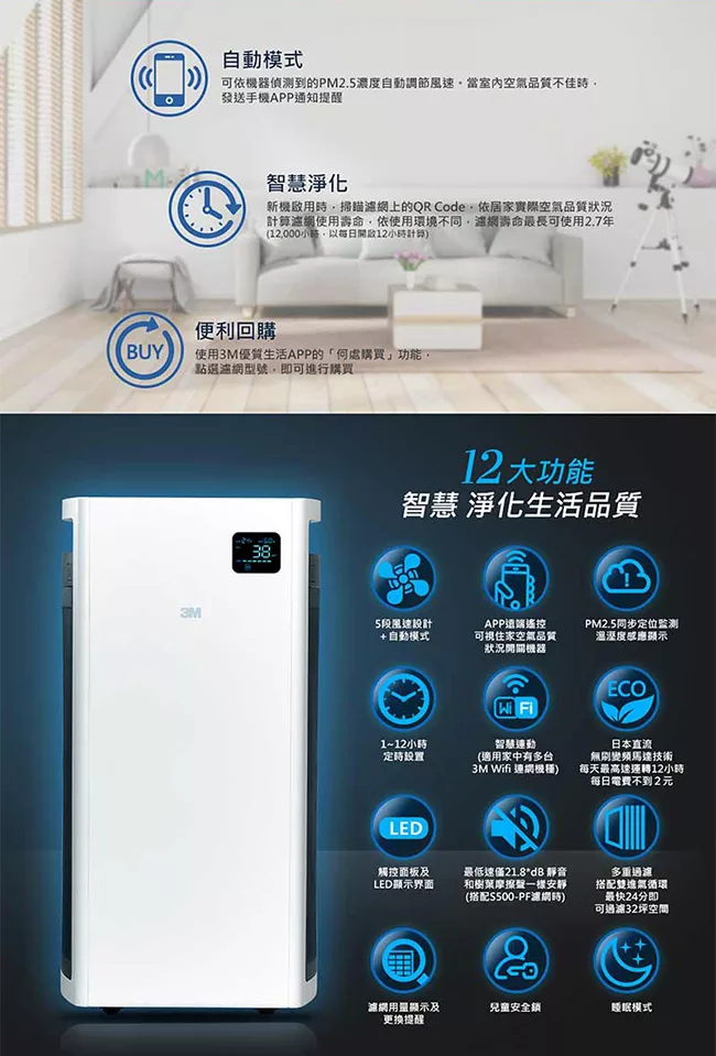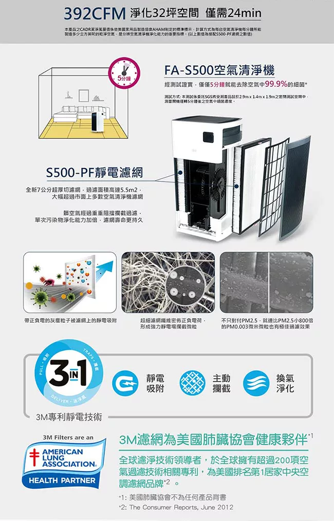 3M™ 淨呼吸™ ~32坪 全效型空氣清淨機 FA-S500-CF