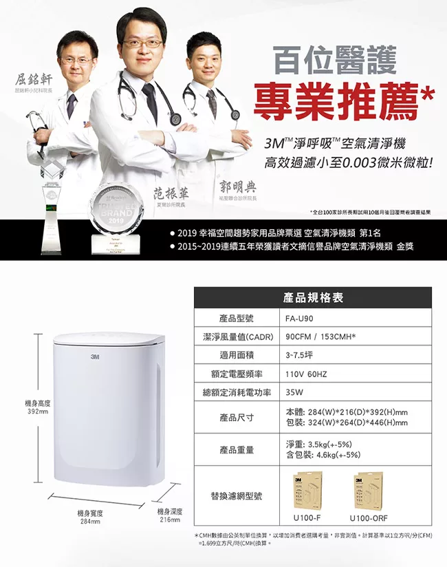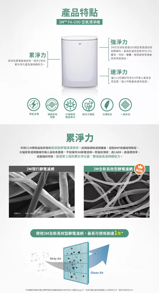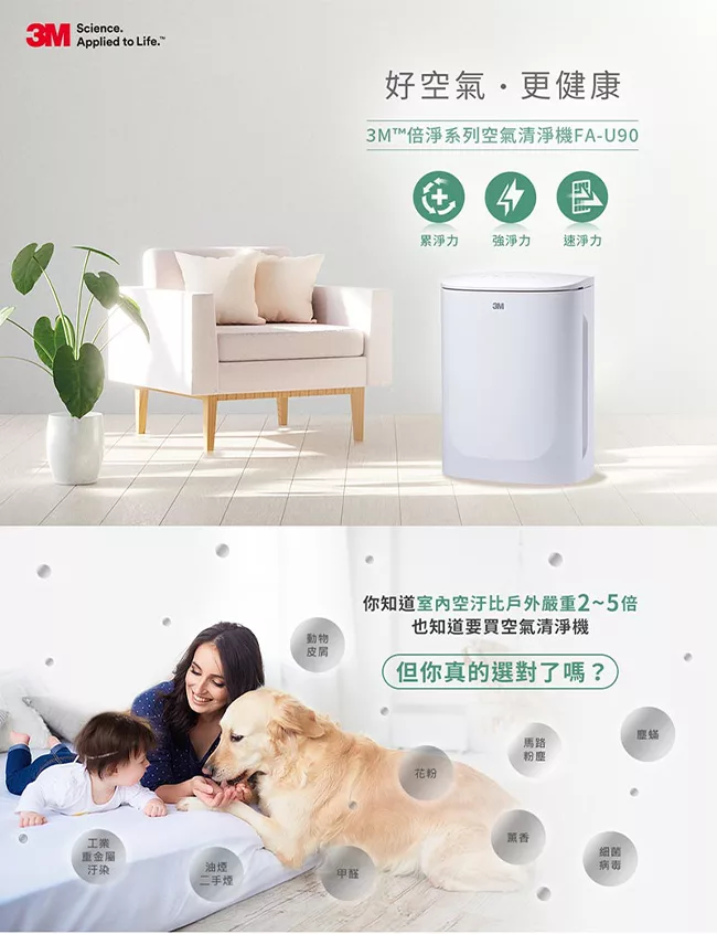 3M™ 淨呼吸™ ~7.5坪 倍淨系列空氣清淨機 FA-U90
