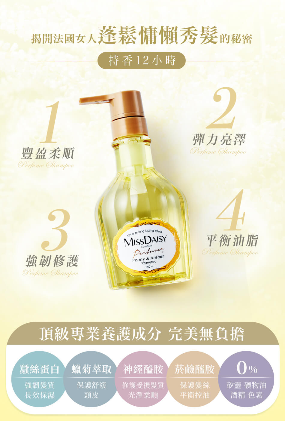 ◆ 商品名稱:MISSDAISY 香氛洗髮精(牡丹與白琥珀)