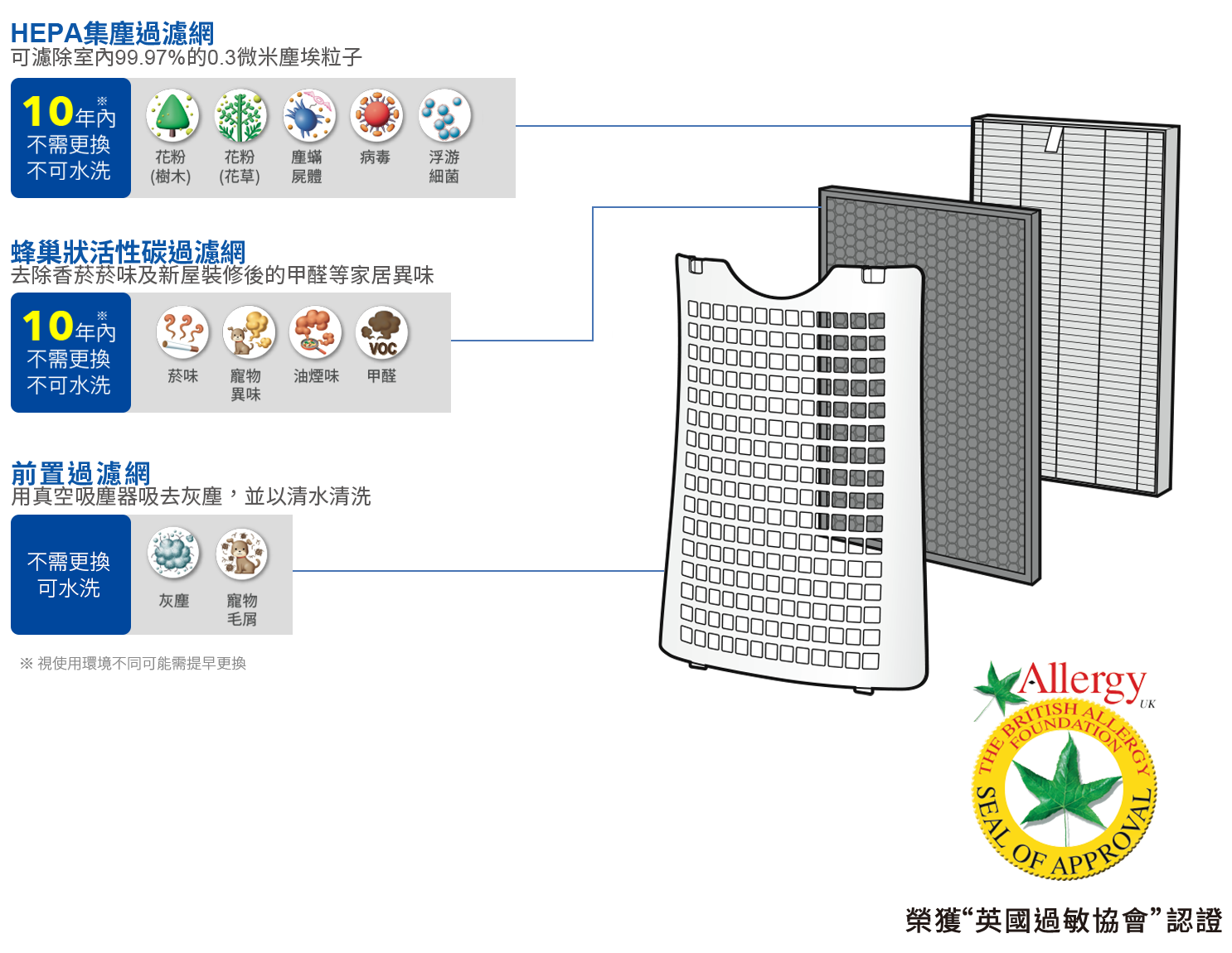 | HEPA過濾網(型號,壽命) | 〇,FZ-M50HFE(壽命10年)*濾網配件視使用環境不同可能需提早更換 |