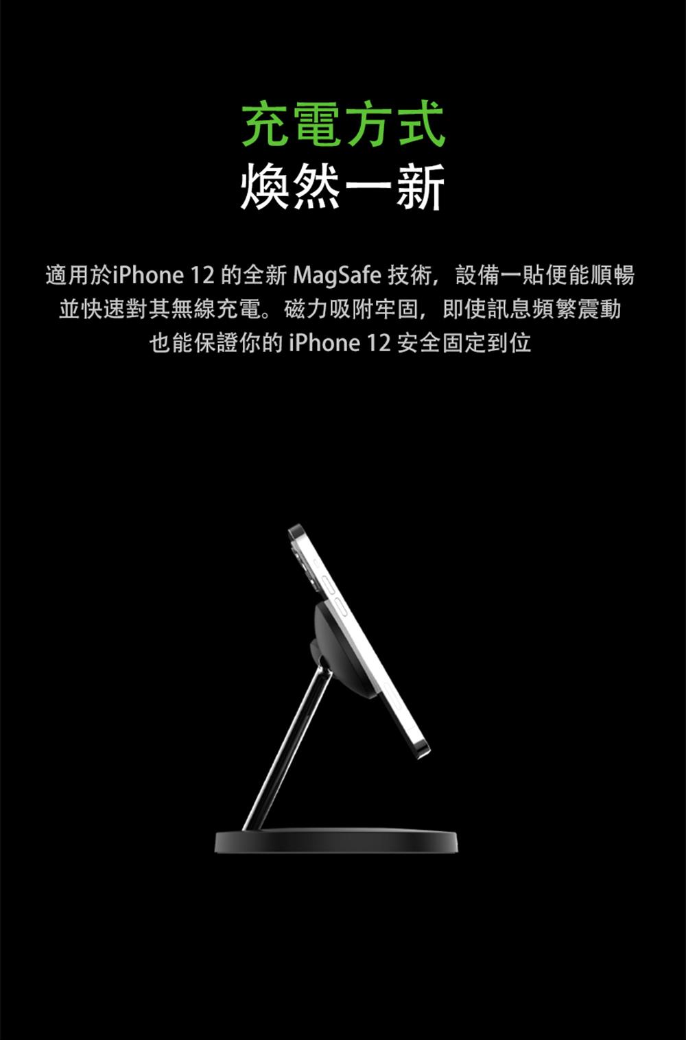 ●iPhone 12專用的全新 MagSafe 技術,完美緊貼裝置,提供快速的無線充電效能