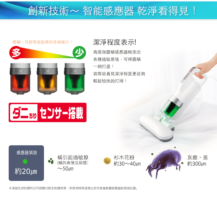 ■智能塵蹣感應器,可根據燈號判斷潔淨程度