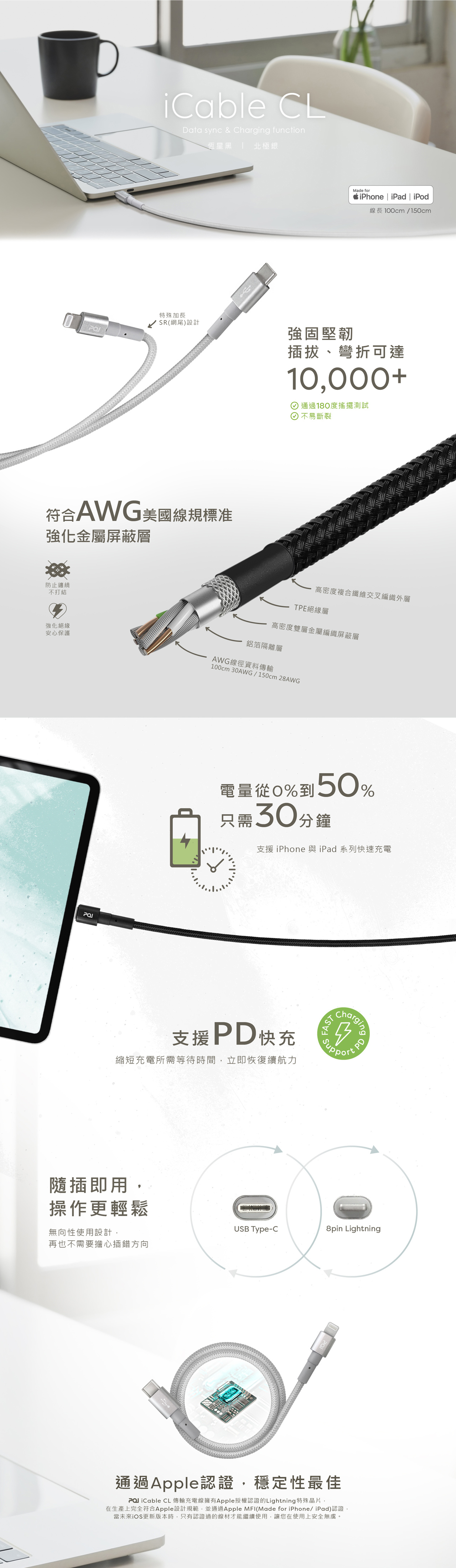 介面:標準 Apple Lightning & standard USB-C