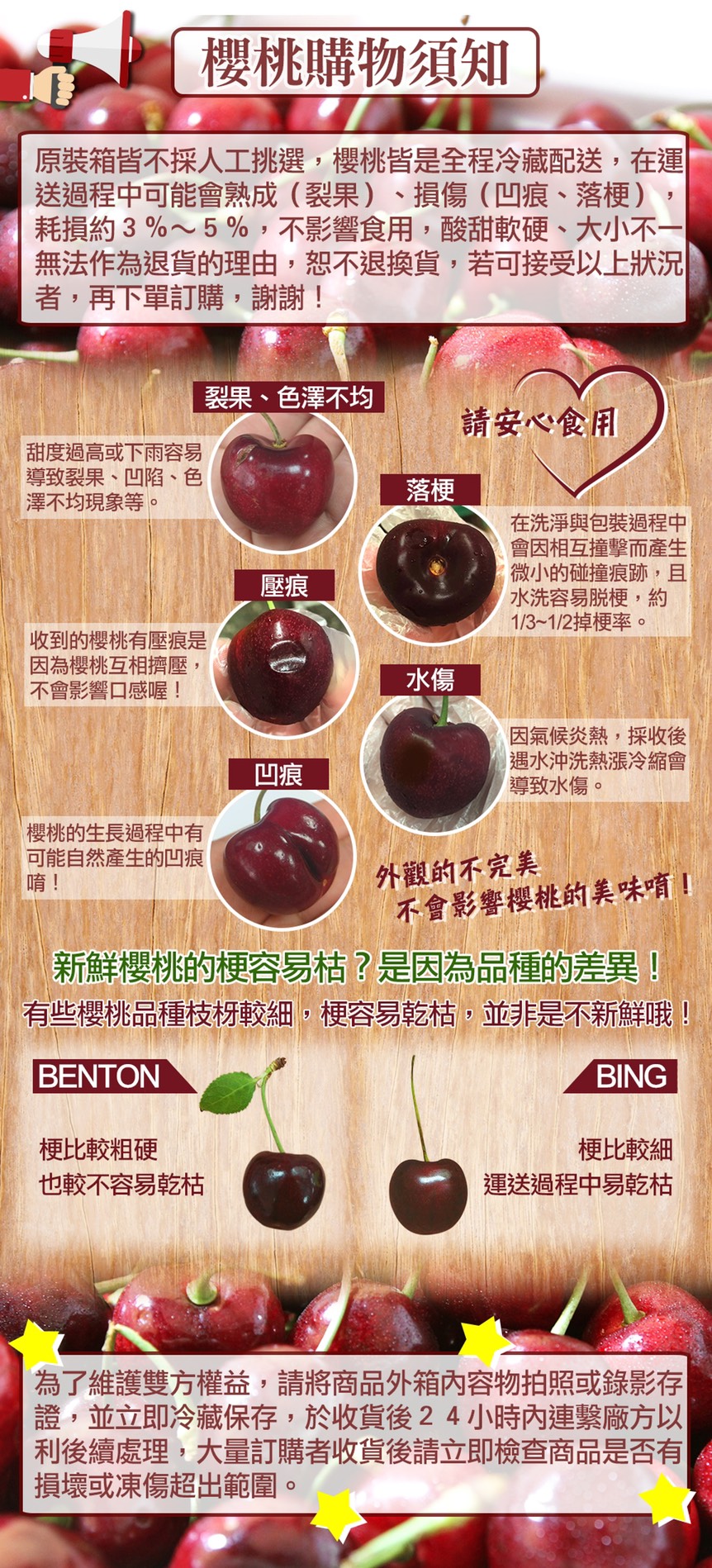 ※水果為天然生長,及採收後會經水洗及包裝,在運送過程外觀多少會有壓痕或裂果,但不影響食用