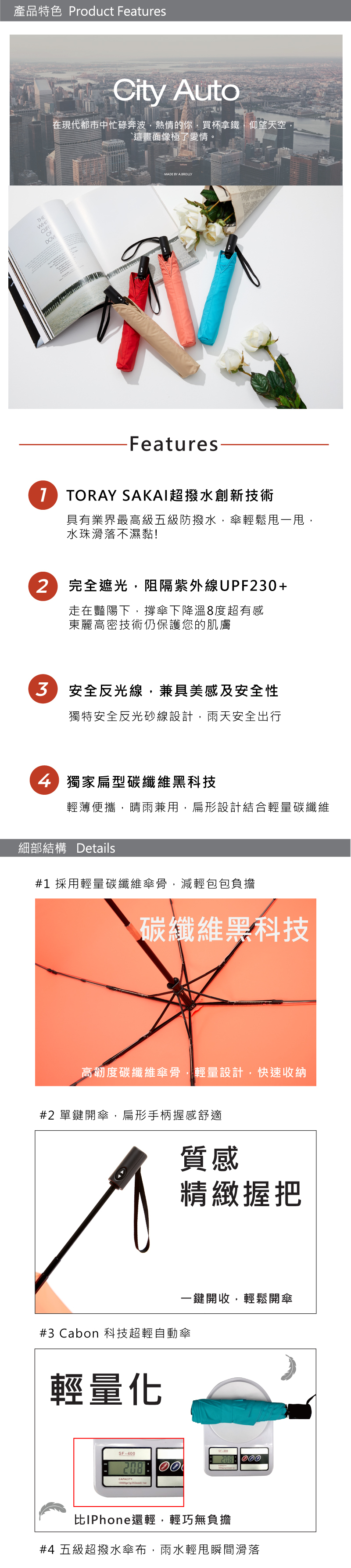 ■超撥水面料,碳纖維傘骨,晴雨兼用