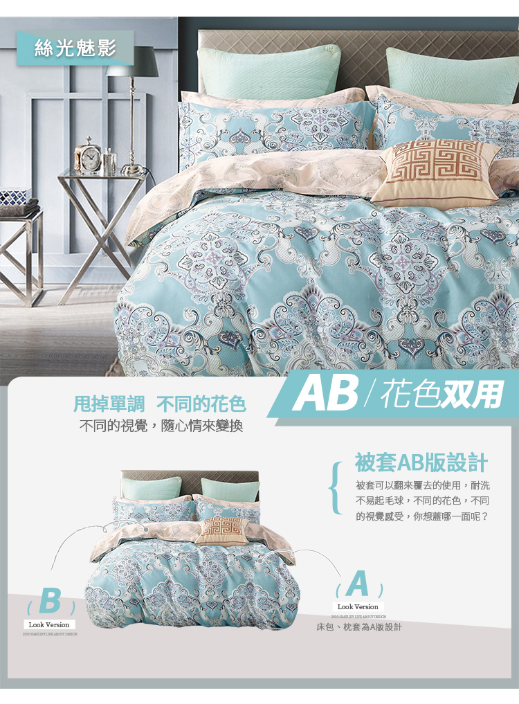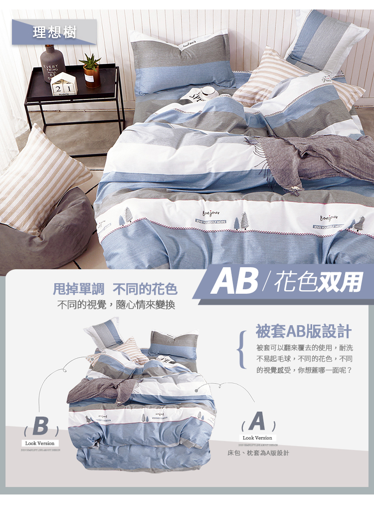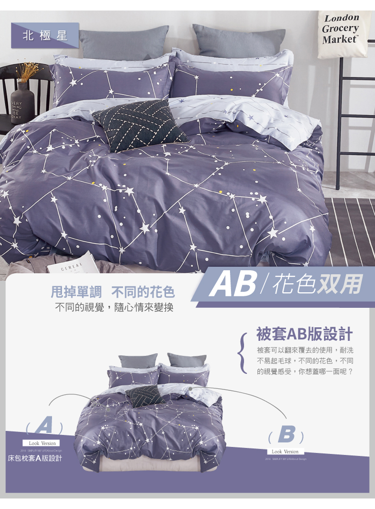 內容物:雙人床包X1+被套X1+美式信封枕套X2件