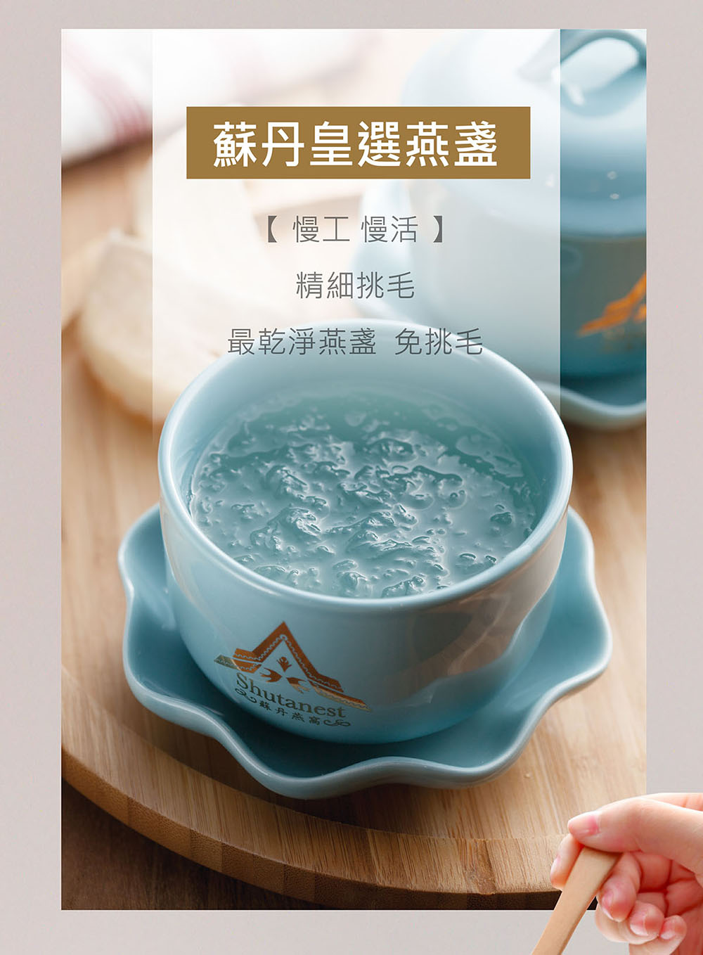 蘇丹燕窩堅持以傳統手工方式除去燕窩雜質,並以科學化的技術,精確掌握可能 影響燕窩品質的每個環節,保留大自然所賜與的營養精華。