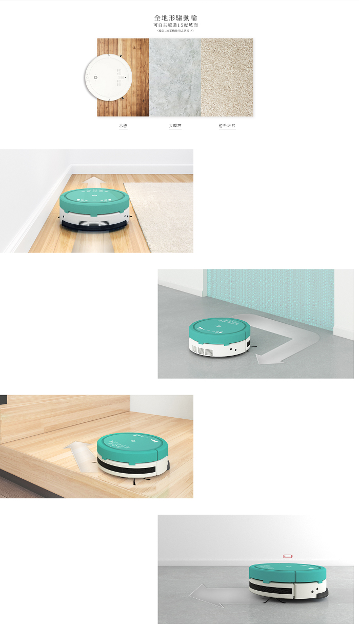 4 .全地形驅動輪:可自主越過15度坡面(單機使用狀況下)