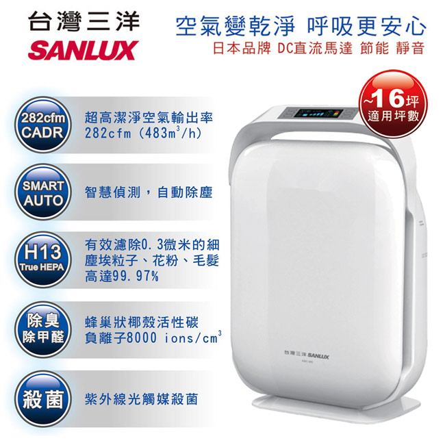 *TRUE HEPA濾網有效濾除0.3微米的細塵埃粒子、花粉、毛髮等高達99.97%